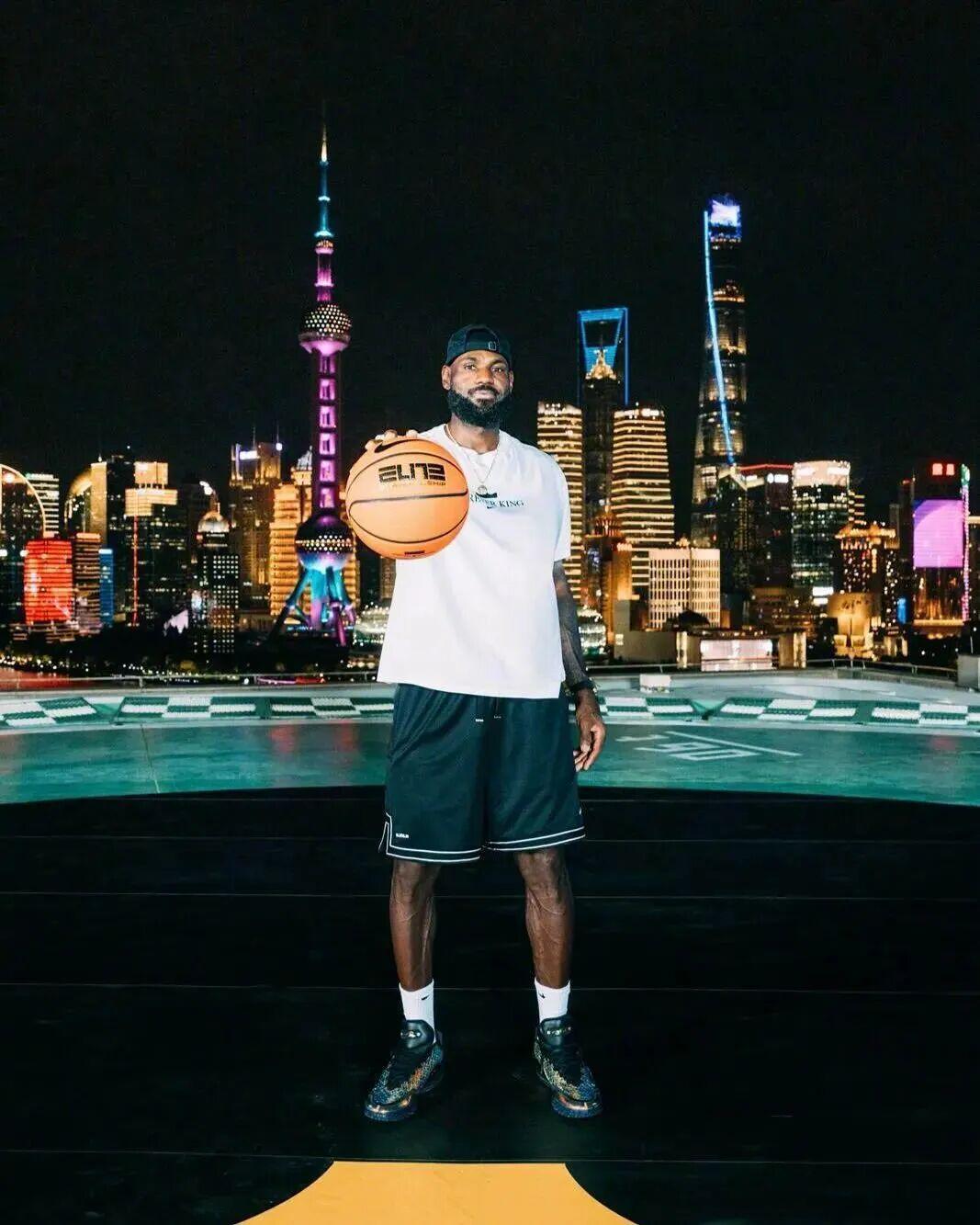最让球迷激动的,还要从耐克官宣开始。文案中,身高2米的詹姆斯,身着耐克Forever King T恤,足蹬LeBron XXIII签名鞋,在上海地标东方明珠前面,拍下来此次中国行的首张官方照。