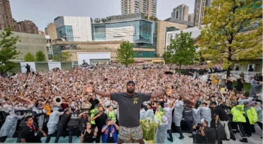 相比十多年前乔丹访华时外滩人山人海、球迷爬上路灯杆只为看眼“飞人”的盛况,詹姆斯此次中国行的疯狂程度也并不低。成都站,成都万象城有巨幅海报装饰,动辄出现路上偶遇追逐、酒店蹲点围攻这些名场面,人潮里全是举着手机尖叫的球迷,因为现场球迷太过热情,不少推搡、拥堵等情况还一度引发了保安的管控。