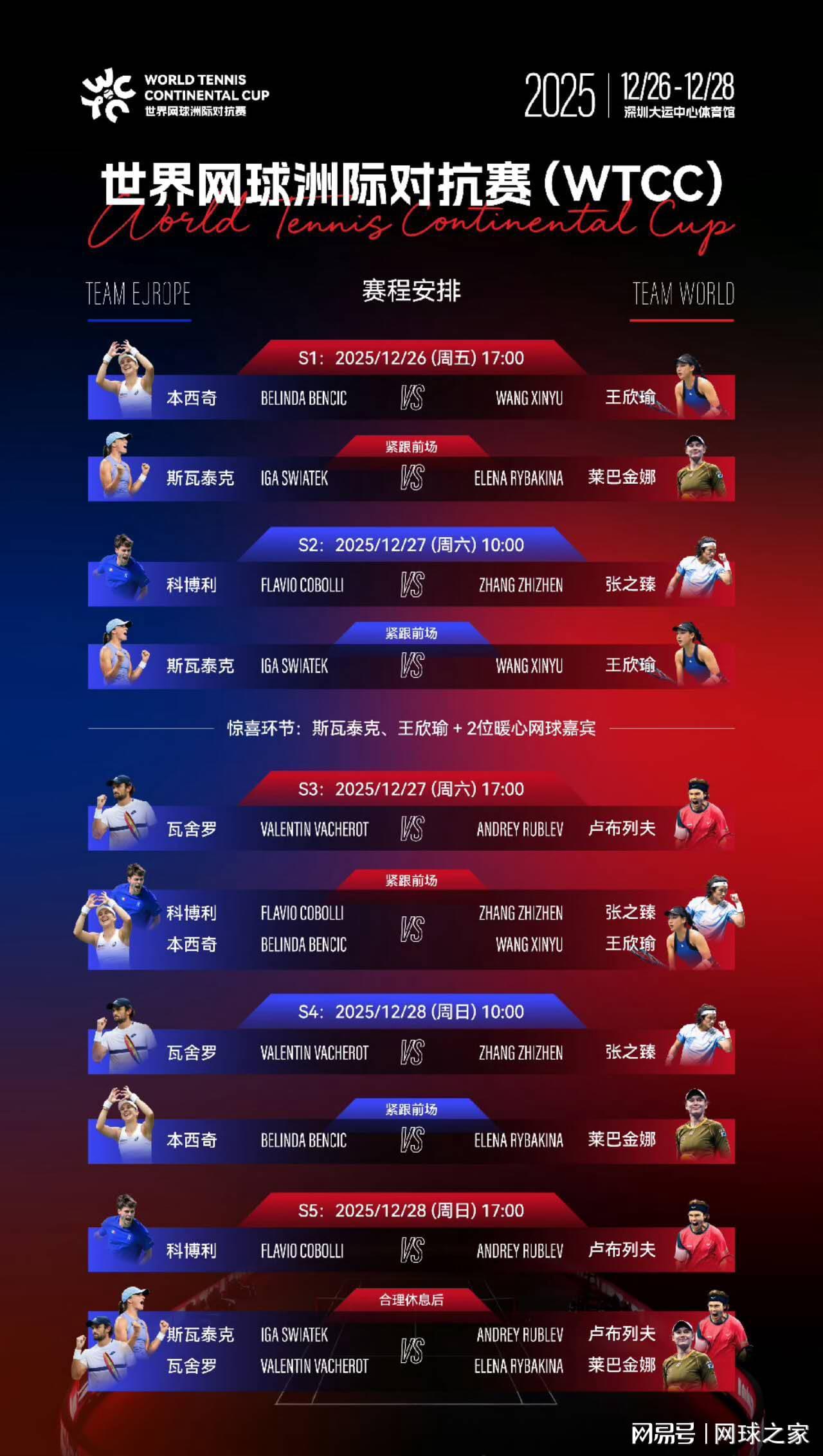 就在今天,WTCC世界网球洲际对抗赛首日比赛拉开战幕。尽管只是表演赛性质,但参赛阵容仍星光熠熠,女单世界第二斯瓦泰克领衔的欧洲队,对阵莱巴金娜领衔的世界队。在引人注目的揭幕战中,中国金花王欣瑜三盘不敌瑞士名将本西奇,随后的斯瓦泰克强势横扫莱巴金娜,帮助欧洲队在首日取得2:0领先。