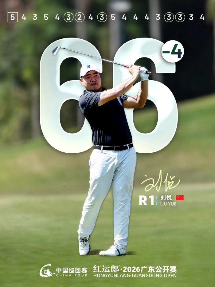 北京时间3月12日,中国巡回赛2026赛季揭幕战——红运郎·2026广东公开赛在广州华美麓湖高尔夫球场正式打响。在这座以球道狭窄、果岭极具挑战性著称的球场上,中国选手刘悦与美国球手伯顿·杰弗里(Jeffrey Burton)双双交出低于标准杆4杆的66杆,以一杆优势并列领跑首轮。张蕙麟、彭博、刘晏玮、黄梓杰、邓韬以及英格兰球手马特·基伦(Matt Killen)均交出67杆(-3),并列位于第三位,领先榜前列竞争呈现白热化态势。