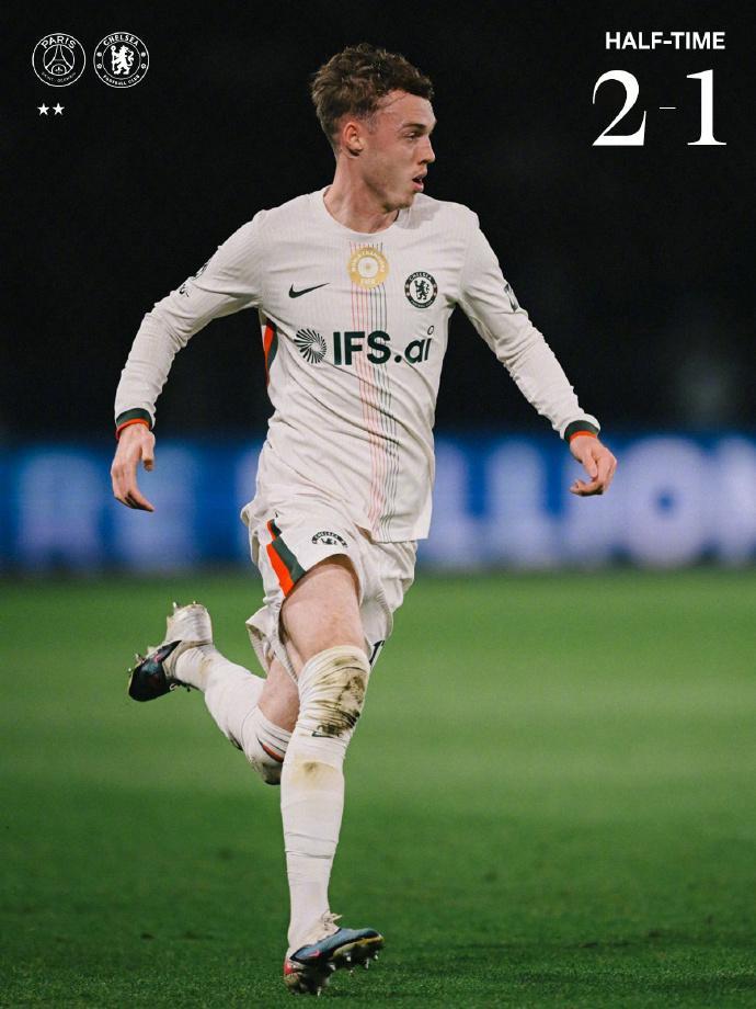落后的切尔西并未慌乱,凭借恩佐、内托领衔的中场梳理,逐渐稳住阵脚。第28分钟,恩佐前场斜传撕开防线,古斯托前插得球后劲射,皮球被门将扑挡后仍窜入球网,切尔西迅速扳平比分,1-1!蓝军的反击简洁高效,充分利用边路空挡,展现出欧冠强队的韧性。