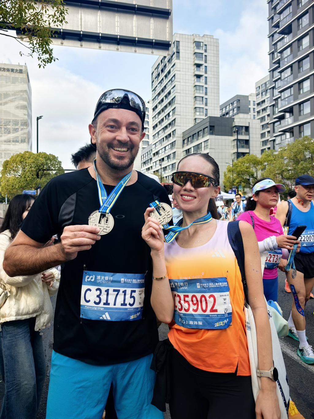 意大利夫妇彼得罗(Pietro)和阿里别克(Alibek)已在上海居住11年,丈夫彼得罗坚持跑步14年,却是第一次参加上海半马,“上海更平坦,可以跑得更快,组织得特别棒,所有人都非常友好。”这样的比赛体验,也让他们对于12月再战上海马拉松充满期待。