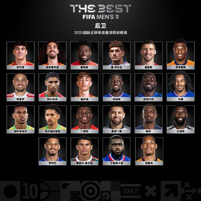 2025年最佳男足球员候选名单↓↓↓